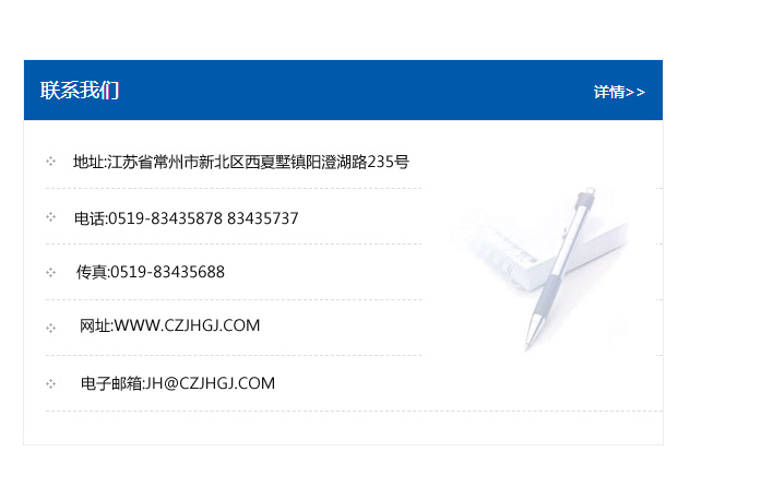 傳真:0519-83435688    郵編:213135    網址:WWW.czjhgj_com.tzjtzb.com    電子郵箱:JH@czjhgj_com.tzjtzb.com